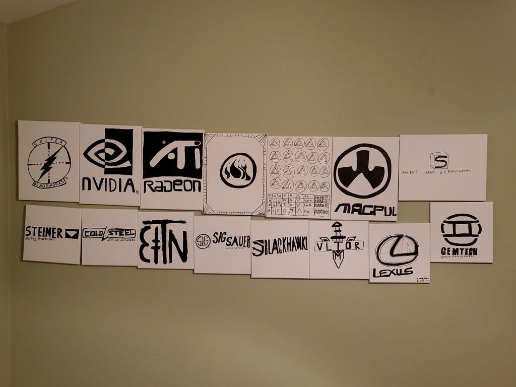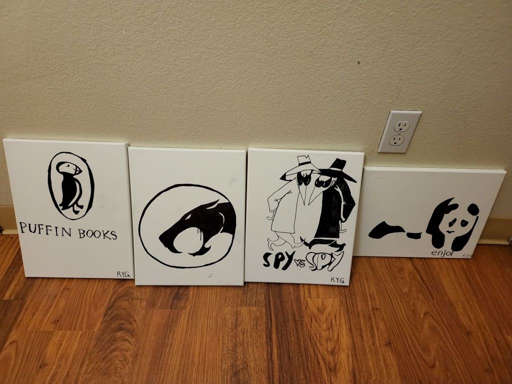I do my art on 11″×14″ and 12″x12″ canvasses and permanent Sharp